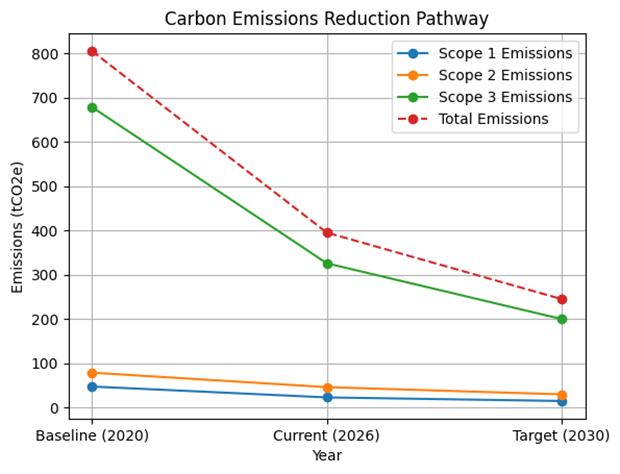 Sustainability Dashboard: A real-time sustainability dashboard will be developed using Tableau and Microsoft Power BI, providing clear visual insights into our emissions data and operational performance. The dashboard will be updated regularly and accessible to key stakeholders for transparency.